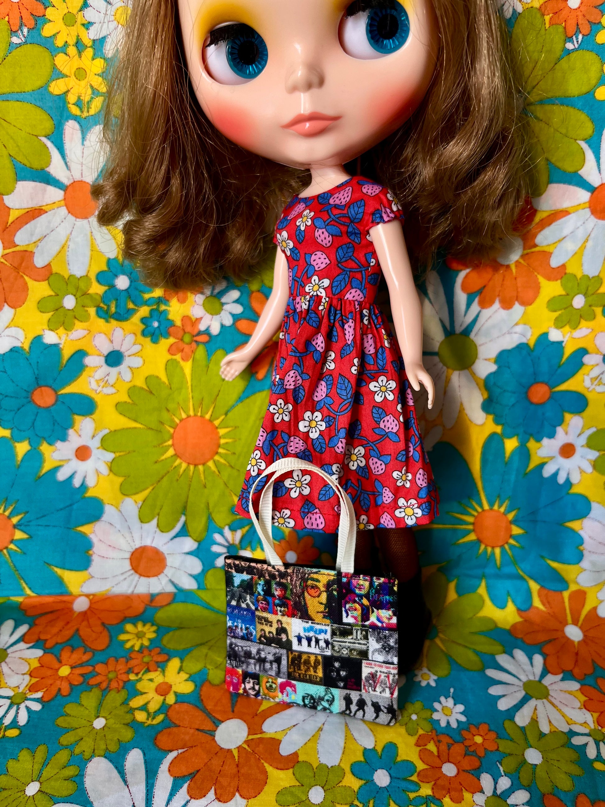1. Bag. 🎸 The main front of the bag it a multicoloured Beatles print. The reverse side is plain black. Straps are cream. The fabric is interfaced to make it more durable. 🎸