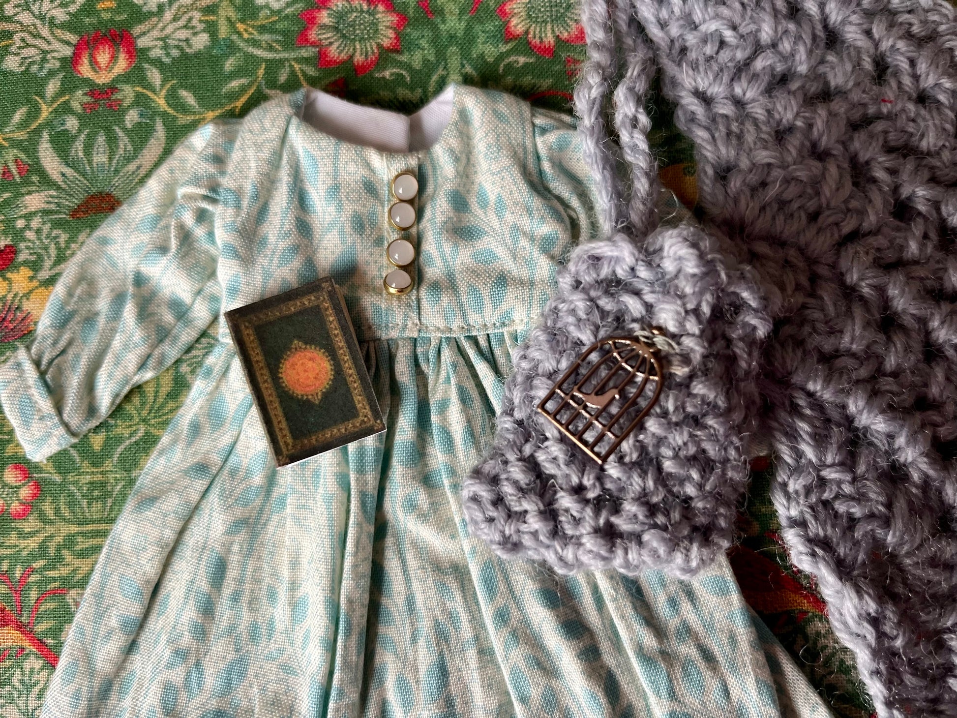 Brontë Sisters Inspired Dress with Shawl, bag & miniature book for Blythe Doll