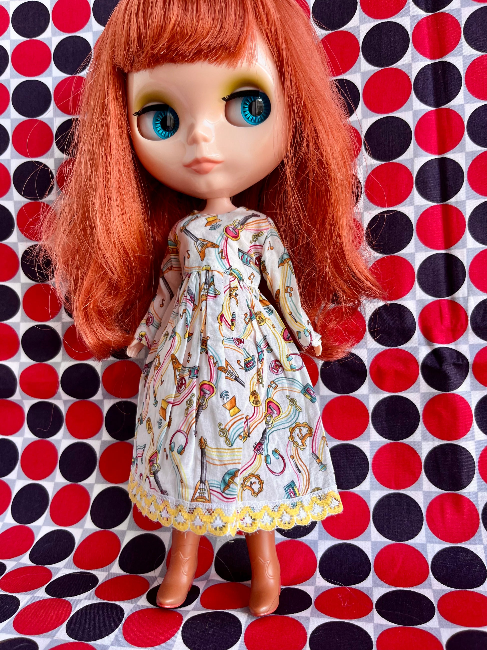 🎸 💖 Dress with full skirt, long sleeves & fitted bodice.