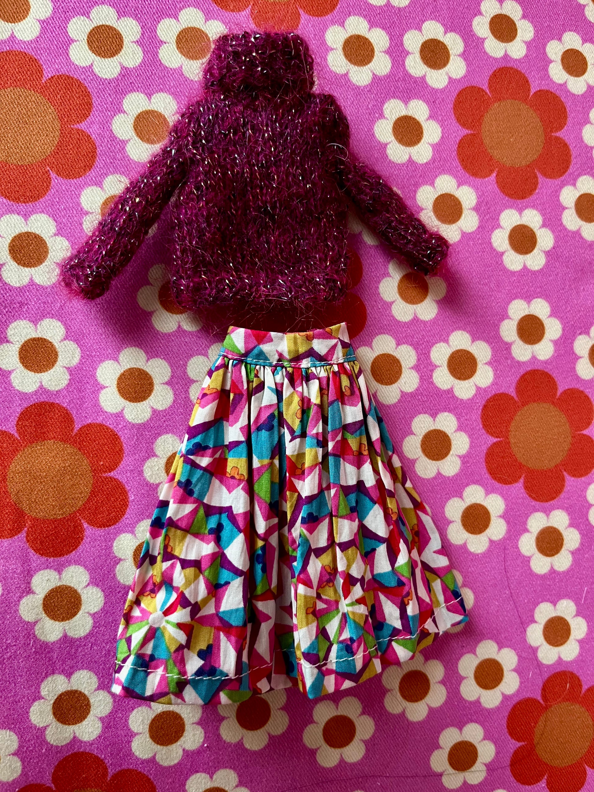 Liberty Skirt & Mohair Sweater Set for Blythe Doll