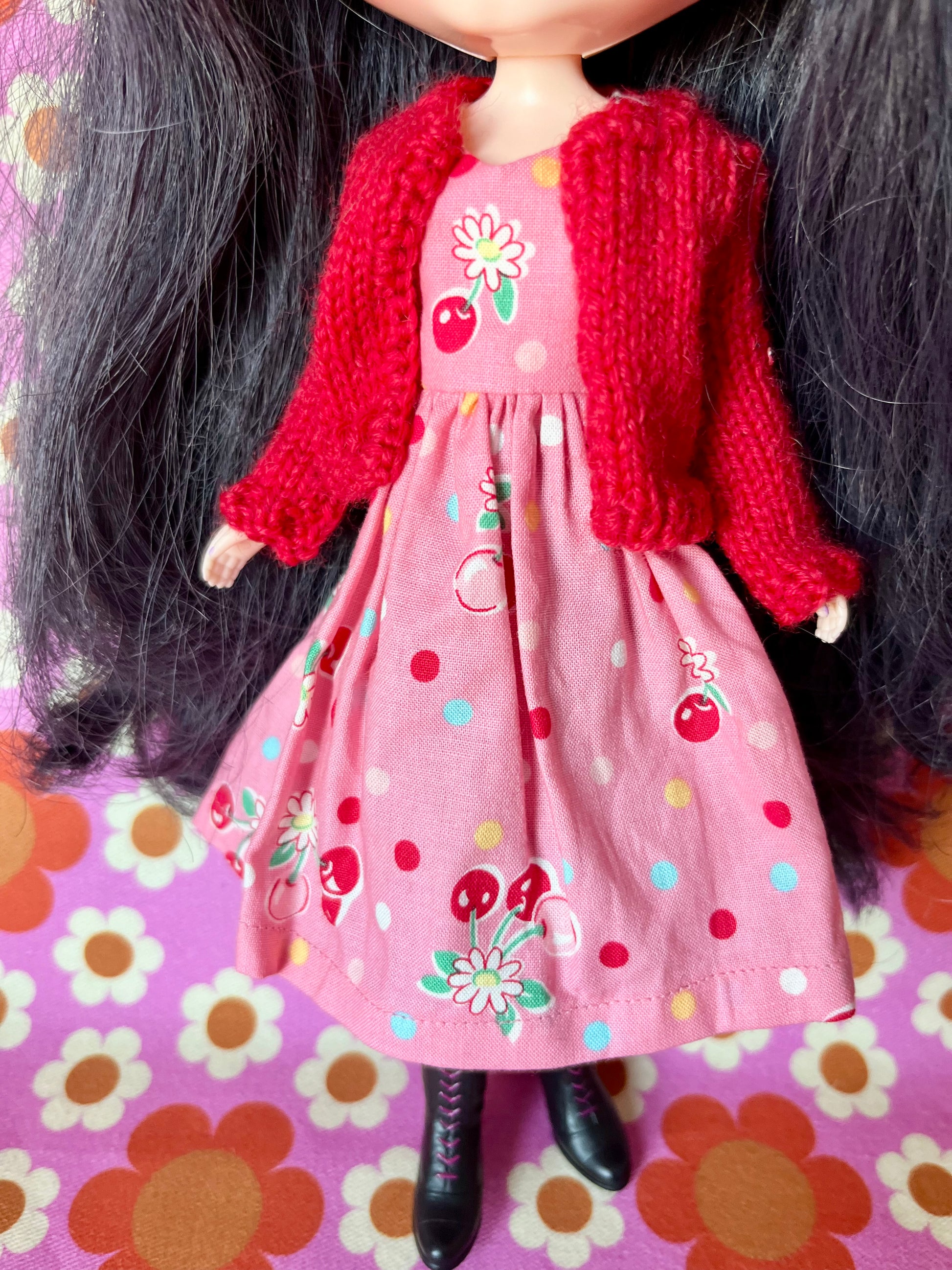 Pink Cherry Dress & Cardigan for Blythe Doll