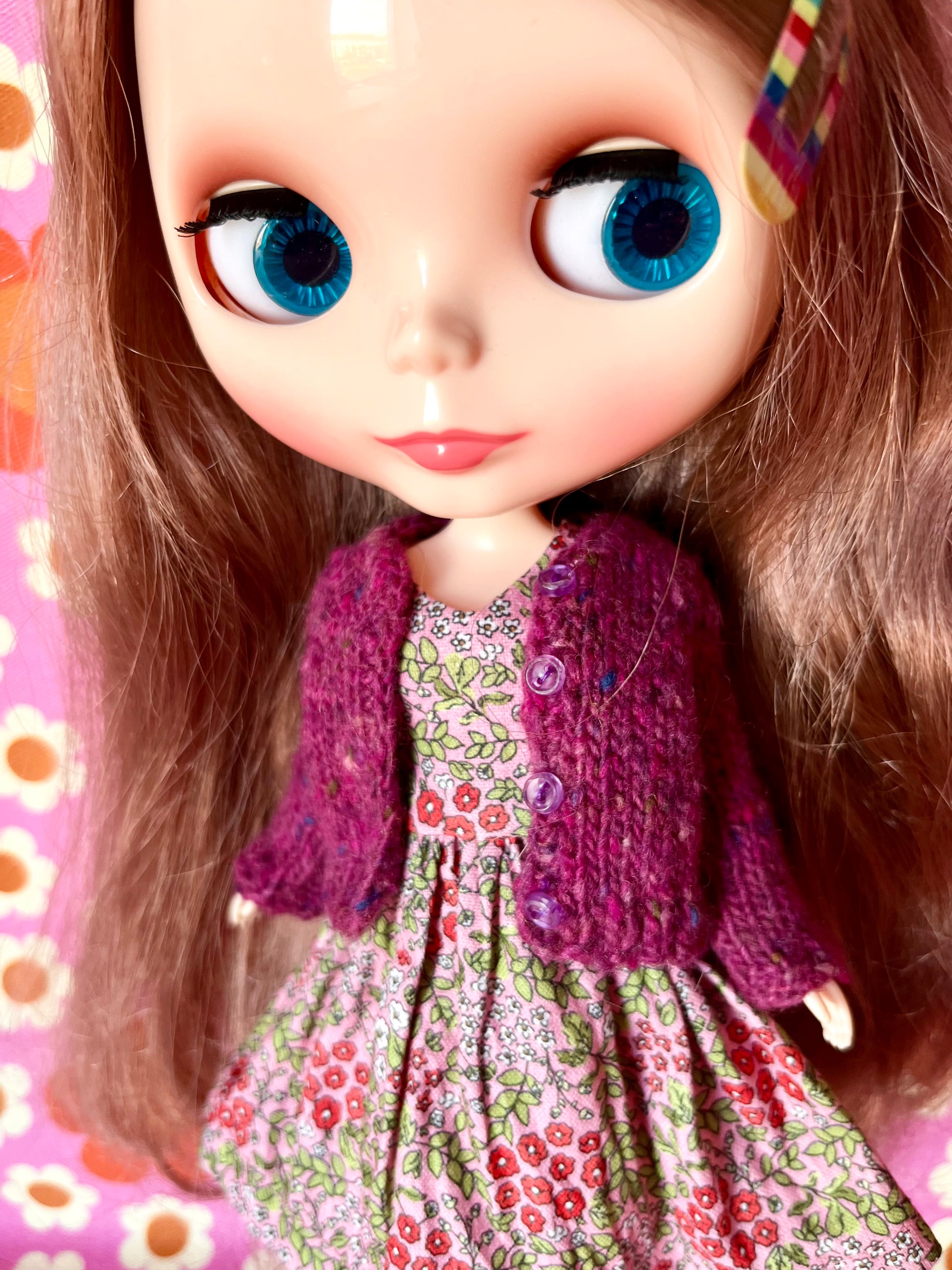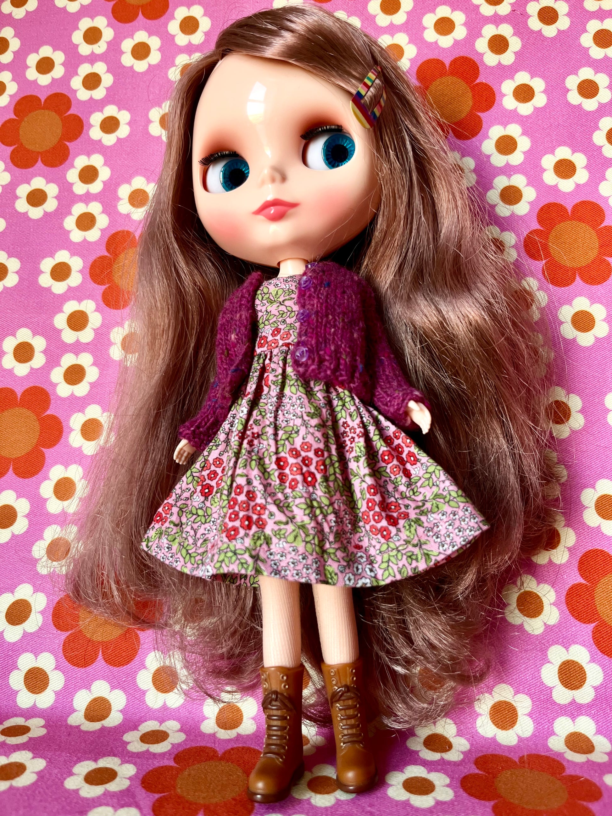 Pink Ditsy Floral Dress & Cardigan for Blythe Doll