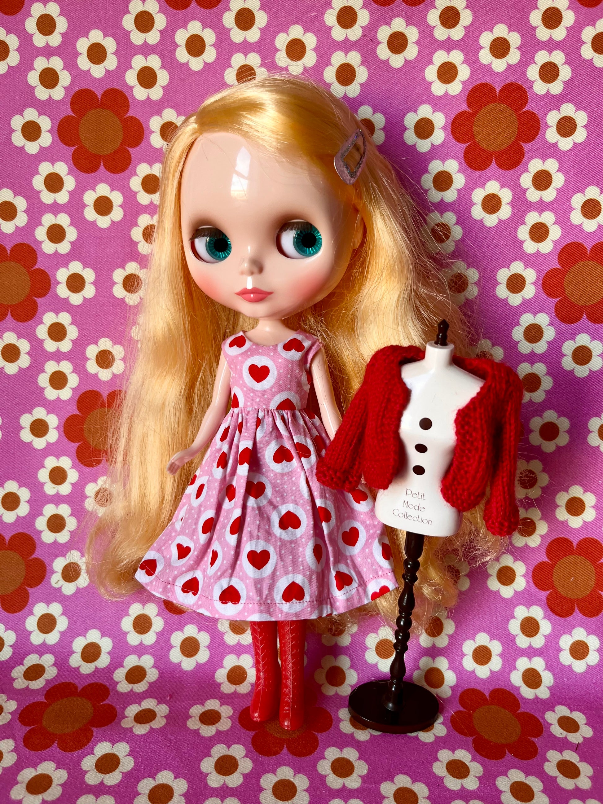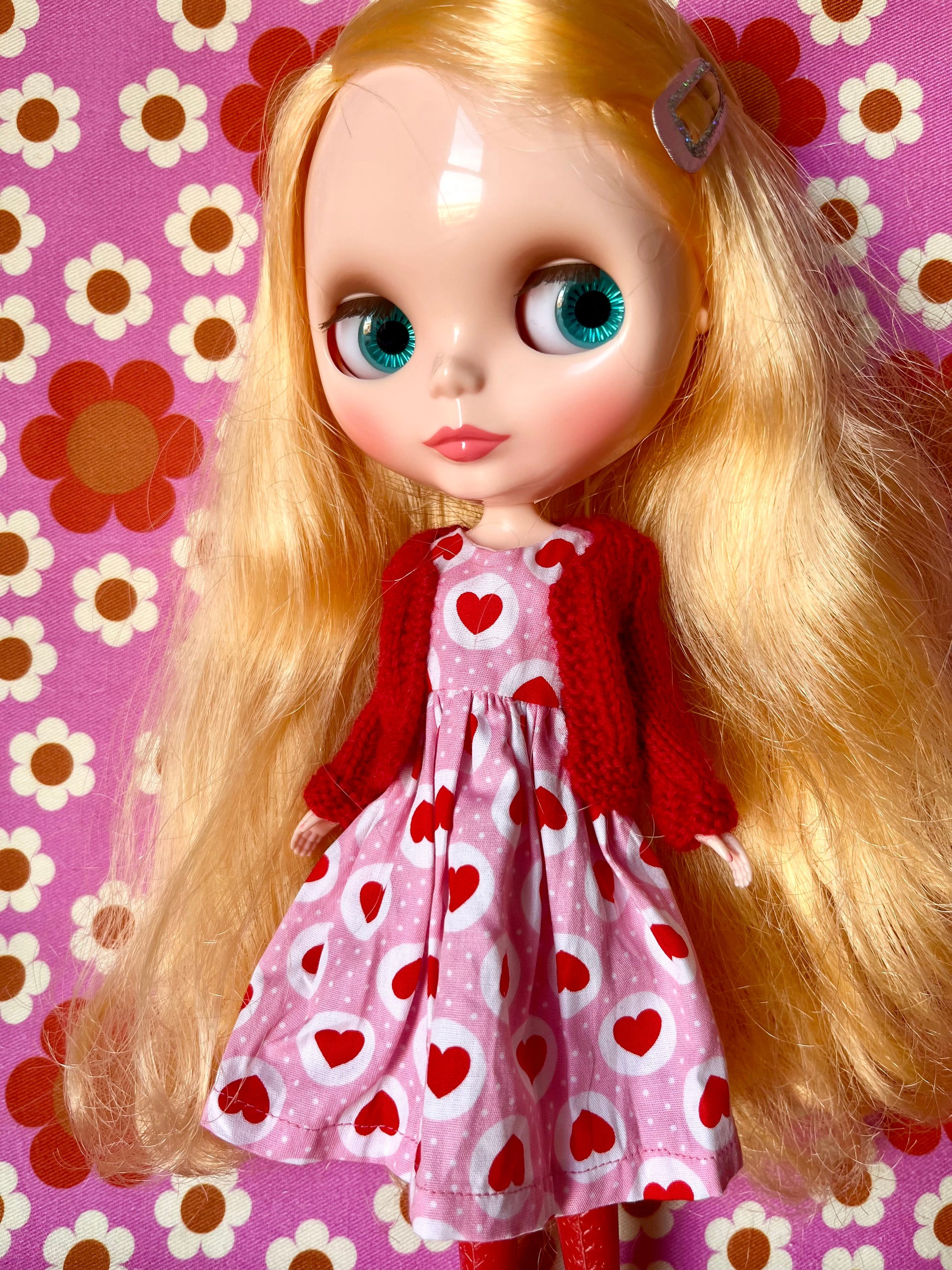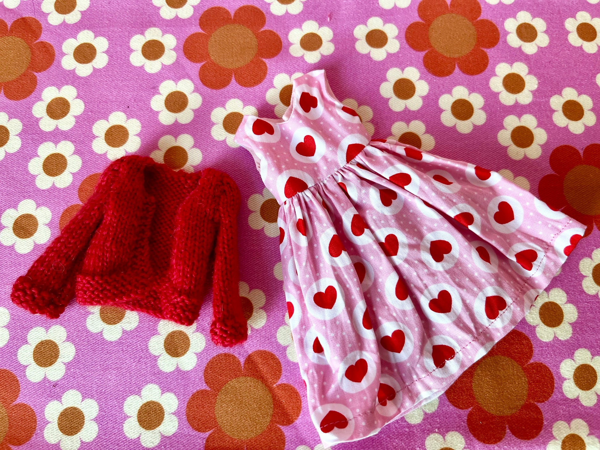 Pink & Red Heart Dress & Cardigan for Blythe Doll